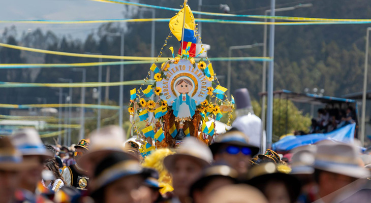 El acierto cultural del pueblo cotopaxense radica en haber elevado este sincretismo a expresión de identidad. En la Mama Negra se entrelazan la cosmovisión andina, el corso ibérico y las devociones cristianas. La Virgen de las Mercedes, patrona de Latacunga, recibe cada año la gratitud de sus devotos por los favores concedidos, entre ellos la protección del volcán Cotopaxi, cuya presencia es constante, majestuosa y temida. El sincretismo religioso encuentra aquí su mejor manifestación. El rezo a la Virgen se funde con las danzas que evocan a Yemanyá, la deidad africana de las aguas, y con los rituales ancestrales que invocan a los apus y espíritus de la montaña. Los rezos y los cantos no conocen fronteras de credo o raza: son expresión de un pueblo que ha sabido convertir su dolor en fiesta y su esperanza en tradición.